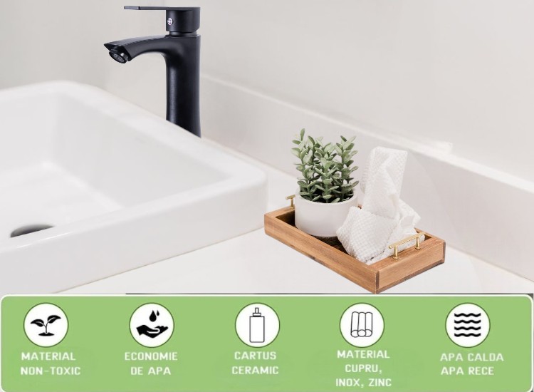 Baterie pentru baie cu design modern, Naimeed D6197, Negru mat