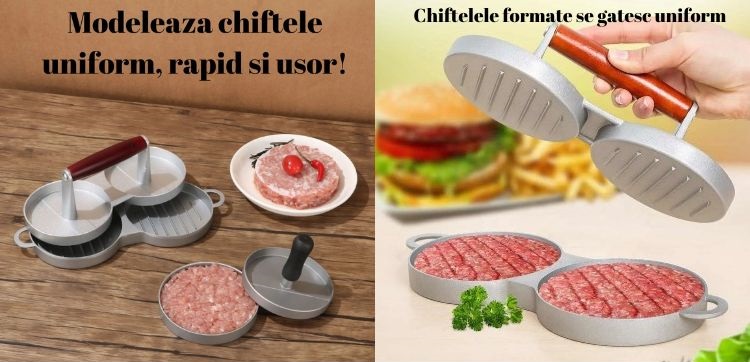Presa dubla pentru burgeri din aluminiu este perfecta pentru a crea chiftele uniforme si bine formate, ideale pentru gratar sau tigaie.