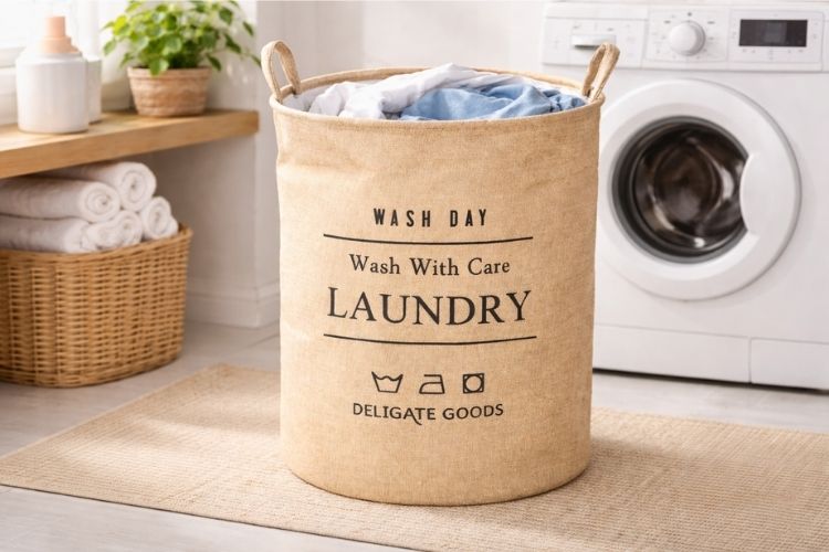 Sacul de rufe Naimeed D7678 este realizat din poliester de înaltă calitate, rezistent și ușor de întreținut, fiind ideal pentru