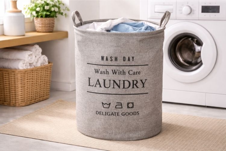 Sacul de rufe Naimeed D7679 este realizat din poliester de înaltă calitate, rezistent și ușor de întreținut, fiind ideal pentru