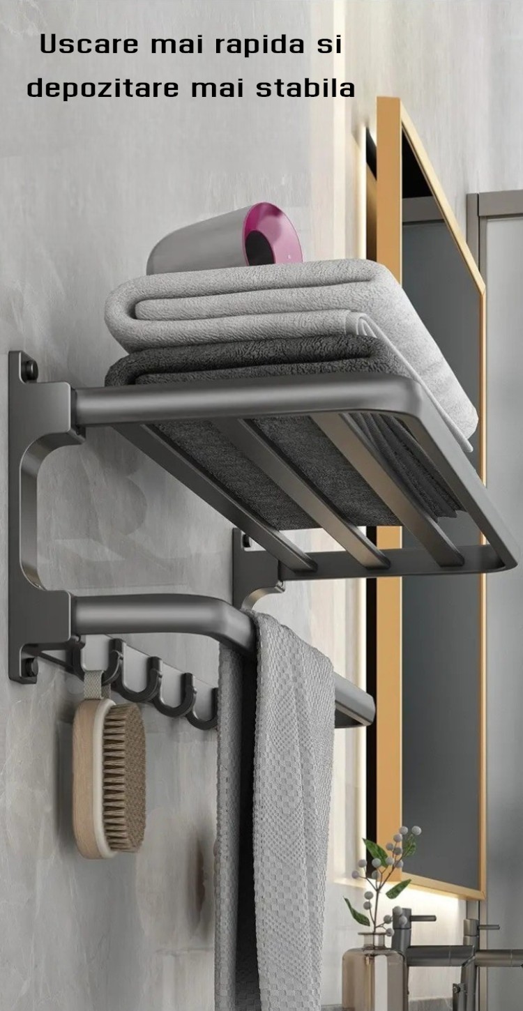 Acest suport de prosoape multifunctional este solutia ideala pentru organizarea eficienta a baii sau a altor spatii.