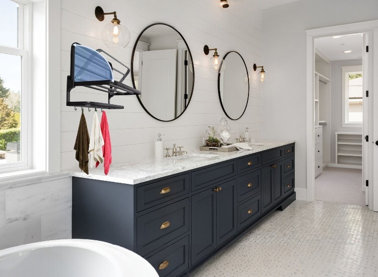 Carlige integrate: Doua carlige laterale, ideale pentru agatarea accesoriilor mici, cum ar fi bureti sau perii.